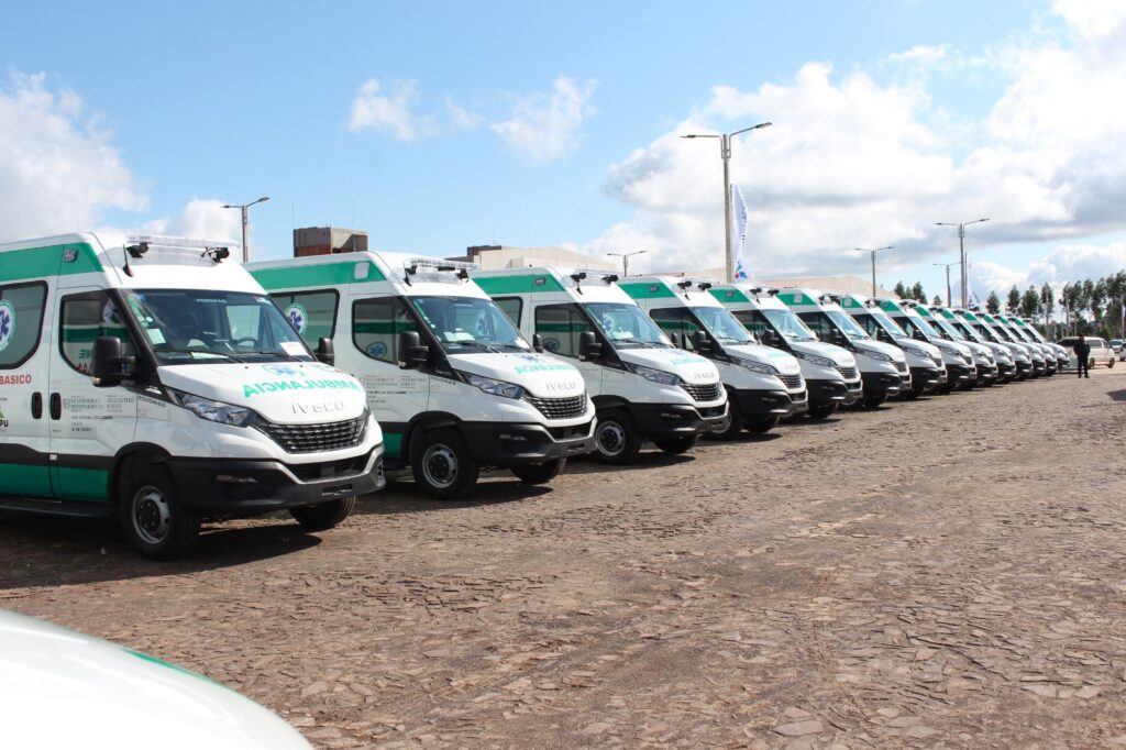 A la fecha, se llevan contabilizados 71 unidades proveídas al sistema de salud pública, la primera tanda fue 26 unidades 4×2 con Cuidados Intensivos (UTI), segunda tanda: 8 ambulancias UTI 4×2, 7 unidades convencionales, tercera tanda el pasado 8 de agosto con 30 unidades básicas que fueron entregadas en la explanada del Hospital General de Coronel Oviedo, con presencia del presidente de la República Santiago Peña, Vicepresidente Pedro Alliana, Dra. María Teresa Barán, Ministra de Salud Pública, Ing. Justo Zacarias Irún, director general paraguayo de la ITAIPU Binacional, gerentes de la Fundación Tesãi, ministros del Poder Ejecutivo, diputada nacional Dra. Rocío Abed de Zacarias, senadores, diputados, gobernadores, intendentes, concejales municipales y departamentales, directores de regiones sanitarias, Hospitales distritales y Centros de Salud que fueron beneficiados con la entrega de estas unidades.