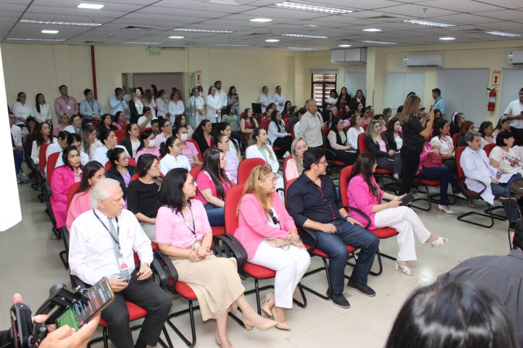 El evento se llevó a cabo en el salón auditorio del Hospital del Área 2 en presencia de autoridades, gerentes, consejo directivo, directores de Hospitales, coordinadores médicos, funcionarios administrativos, jefes de departamentos y servicios, profesionales de blanco, invitados especiales, representantes de la Secretaria Nacional de Turismo (SENATUR), Oficina Parlamentaria de la Diputada Rocío Abed, Policía Nacional, pacientes con tratamiento de cáncer de mama y representantes de medios de comunicación.