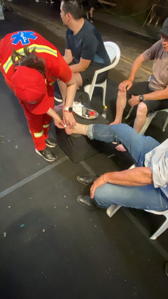 Siguió diciendo que los casos más frecuentes de atención fueron “los calambres, la deshidratación, insolación, dolores de cabeza, cefaleas, además de las ampollas en los miembros inferiores por el calor y la larga caminata. También repartimos agua bien fría, hicimos masaje a personas mayores para recuperar fuerzas”, sostuvo el profesional.
